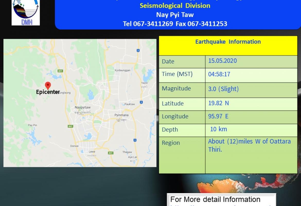 မိုးလေဝသနှင့် ဇလဗေဒညွှန်ကြားမှုဉီးစီးဌာန၏ (၁၄-၅-၂၀၂၀)နေ့ ညနေ(၄)နာရီအချိန် ထုတ်ပြန်ချက်အရ ဘင်္ဂလားပင်လယ်အော် အရှေ့တောင်ပိုင်းတွင် ဖြစ်ပေါ်နေသော လေဖိအားနည်းရပ်ဝန်းသည် ဆက်လက်တည်ရှိနေပြီး ပိုမိုအားကောင်းလာကာ