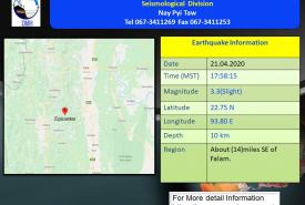 ဖလမ်းမြို့၏ အရှေ့တောင်ဘက် ၁၄ မိုင်ခန့်အကွာတွင် အင်အားရစ် (ခ်) တာစကေး (၃ ဒသမ ၃) အဆင့်ရှိ မြေငလျင်တစ်ခု လှုပ်ရှား