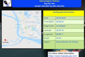 ဒလမြို့၏ အနောက်ဘက် (၅)မိုင် ခန့်အကွာတွင် အင်အား ရစ်(ခ်)တာစကေး (၃.၀) အဆင့်ရှိ မြေငလျင်တစ်ခု လှုပ်ရှား