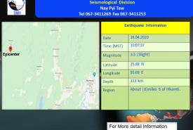 ခန္တီးမြို့ အနီးတွင် ၃ ဒသမ ၅အဆင့်ရှိ မြေငလျင်တစ်ခုလှုပ်ရှား