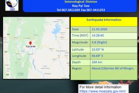 ၃ ဒသမ ၈ အဆင့်ရှိ မြေငလျင် မင်းကင်းမြို့အနီး လှုပ်ရှား