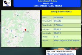မိုးလေဝသနှင့်ဇလဗေဒညွှန်ကြားမှုဦးစီးဌာနမှ မတ် ၁၈ ရက် ည ၇ နာရီ အချိန်တွင် နေ့စဉ်မိုးလေဝသသတင်း ထုတ်ပြန်ရာ ဘင်္ဂလားပင်လယ်အော်အခြေအနေမှာ ဘင်္ဂလားပင်လယ်အော်မြောက်ပိုင်းတွင် တိမ်အနည်းငယ် ဖြစ်ထွန်းနေပြီး၊ ကပ္ပလီပင်လယ်ပြင်နှင့် ကျန်ဘင်္ဂလားပင်လယ်အော်တို့တွင် တိမ်အသင့်အတင့် ဖြစ်ထွန်းနေပါသည်။
