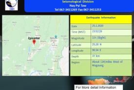 မိုးကောင်းမြို့၏ အနောက်ဘက် (၂၄)မိုင်ခန့် အကွာတွင် အင်အားအနည်းငယ်ရှိသော မြေငလျင်တစ်ခု လှုပ်ရှား