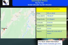၃ ဒသမ ၃ အဆင့်ရှိ အင်အားအနည်းငယ်ခန့် မြေငလျင်လှုပ်ရှား