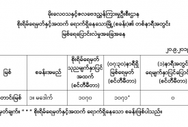 ယနေ့နံနက် ၈ နာရီခွဲတွင် မိုးလေဝသနှင့်ဇလဗေညွှန်ကြားမှု ဦးစီးဌာနမှ ထုတ်ပြန်သည့် စစ်တောင်း မြစ်ရေအခြေအနေ