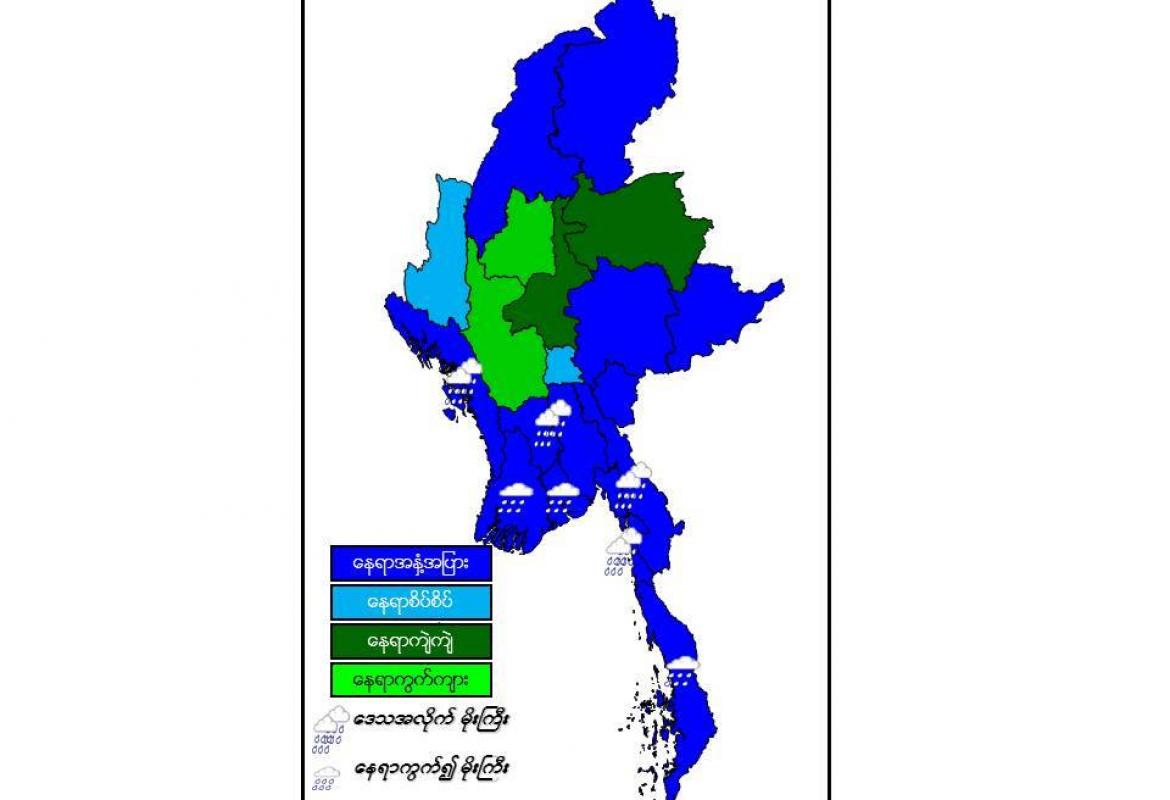ကရင်ပြည်နယ်နှင့် မွန်ပြည်နယ်တို့တွင် နောက်(၂)ရက်အတွင်း မိုးဆက်လက်ပိုနေနိုင်