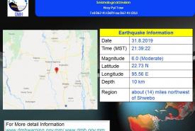 (၃၁.၈.၂၀၁၉) ရက်နေ့ (၂၁.၃၉.၂၂) အချိန်တွင် လှုပ်ရှားခဲ့သော မြေငလျင်၏ နောက်ဆက်တွဲ မြေငလျင်များ