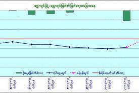ယနေ့မြန်မာစံတော်ချိန် ၉ နာရီခွဲအချိန် တိုင်းထွာချက်အရ ရွှေကျင်မြစ်ရေသည် ရွှေကျင်မြို့ တွင် ယင်းမြို့၏ စိုးရိမ်ရေမှတ်အောက် (၁)ပေခွဲခန့်တွင် ရောက်ရှိနေပြီး ..........