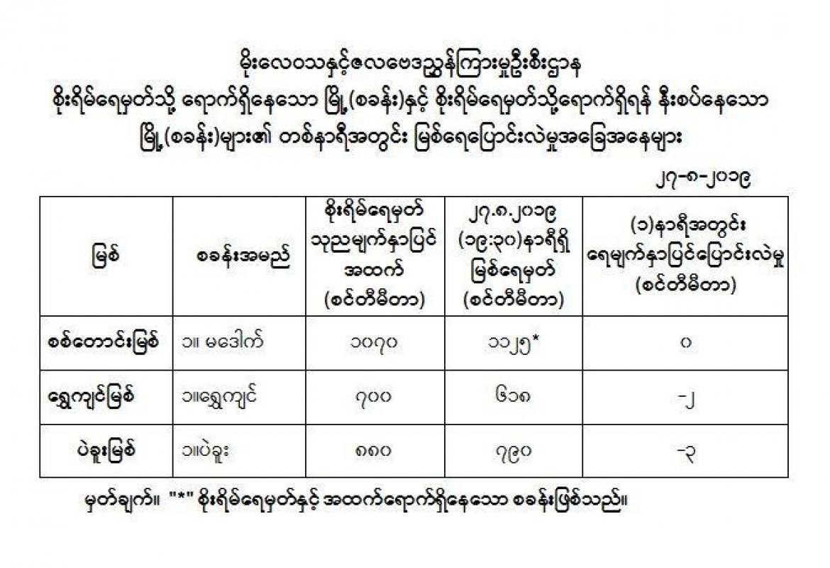 မိုးလေဝသနှင့်ဇလဗေဒညွှန်ကြားမှုဦးစီးဌာနမှ ယနေ့ နံနက် ၆ နာရီခွဲတိုင်းတာရရှိသော မြစ်ရေ အခြေအနေ များကို အောက်ပါအတိုင်းဖော်ပြထားသည်။
