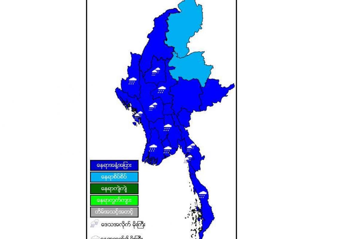 တိုင်းဒေသကြီးလေးခုနှင့် ပြည်နယ်နှစ်ခုတို့တွင် မိုးပိုနေမည်