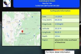 မောက်မယ်မြို့အနီးကိုဗဟိုပြုကာ အင်အား ၃ ဒသမ ၅ အဆင့်ရှိ မြေငလျင်တစ်ခုလှုပ်ရှား