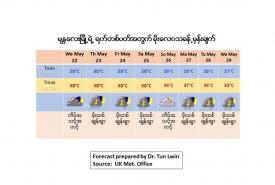 မန္တလေးမြို့တွင် လာမည့် တစ်ပတ်အတွင်း မိုးထစ်ချုန်းရွာနိုင်