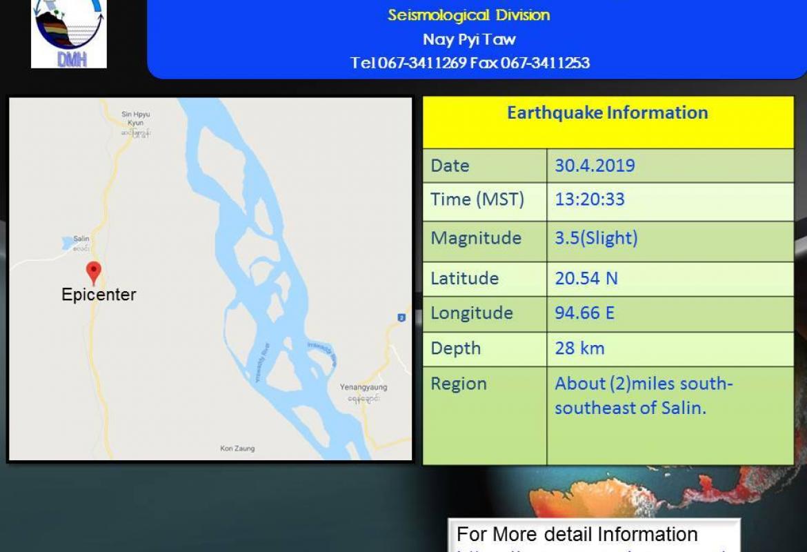 မိုးလေဝသနှင့်ဇလဗေဒညွှန်ကြားမှုဦးစီးဌာနမှ ၂၀၁၉ ခုနှစ်၊ ဧပြီလ (၃၀)ရက်နေ့၊ နံနက်(၁၀:၃၀)နာရီအချိန် ထုတ်ပြန်ချက်အရ--------
