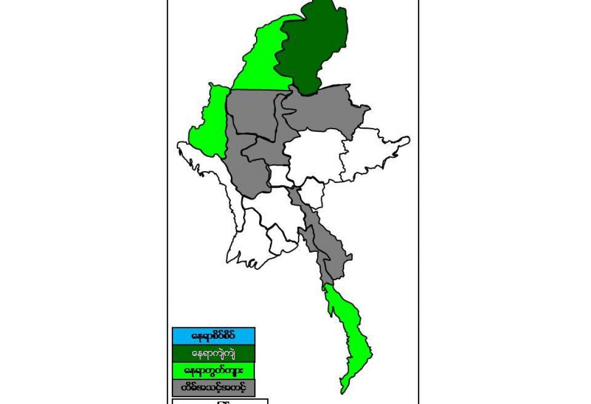 စစ်ကိုင်းတိုင်းဒေသကြီး အထက်ပိုင်း၊ တနင်္သာရီတိုင်းဒေသကြီးနှင့် ကချင်ပြည်နယ်တို့တွင် နေရာကွက်ကျား မိုးထစ်ချုန်းရွာနိုင်