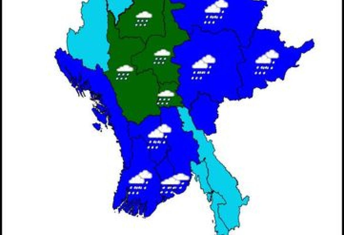 နေပြည်တော်၊ စစ်ကိုင်းတိုင်းဒေသကြီးအောက်ပိုင်း၊ မန္တလေးတိုင်းဒေသကြီး၊ မကွေးတိုင်းဒေသကြီးနှင့် ရှမ်းပြည်နယ်တို့တွင် နေရာကွက်၍ မိုးကြီးနိုင်