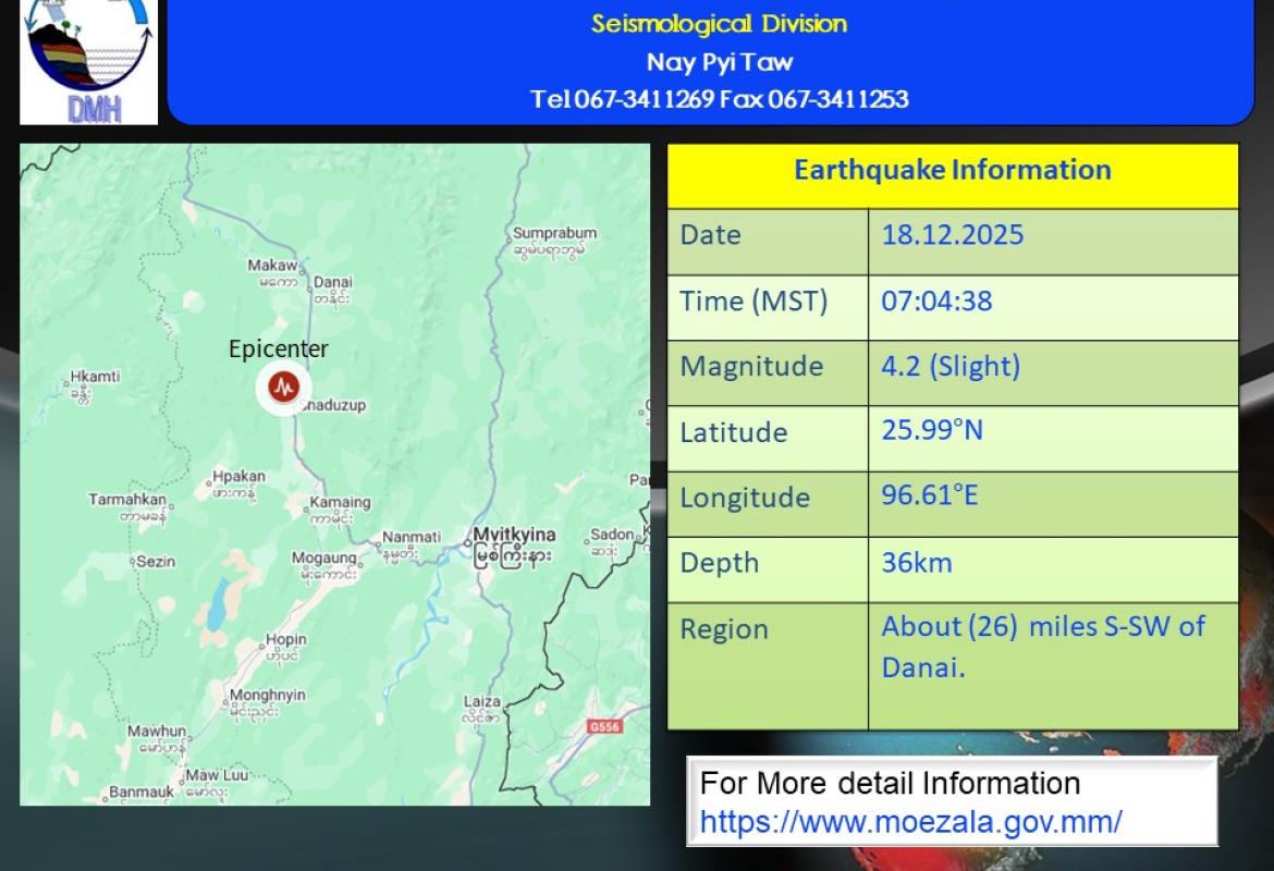 အင်အားရစ်(ခ်)တာစကေး (၄.၂) အဆင့်ရှိ အင်အားအနည်းငယ်ရှိသော မြေငလျင်တစ်ခု လှုပ်ခတ်