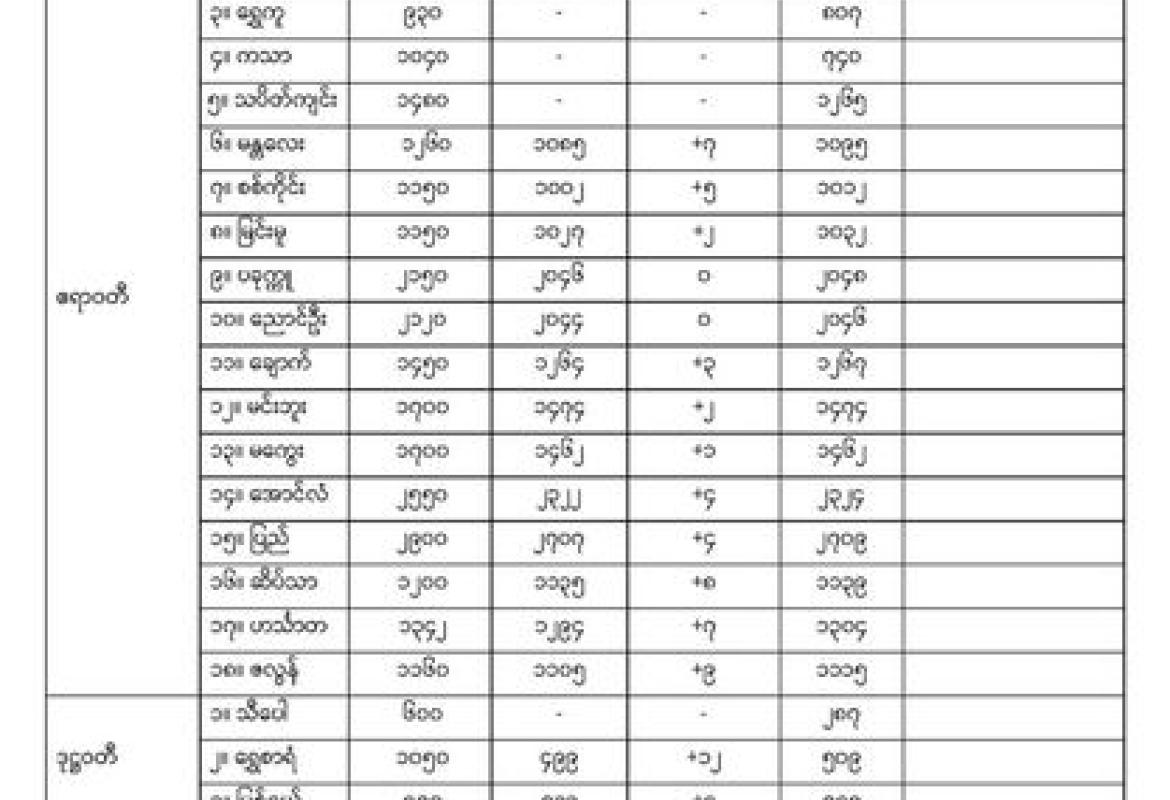 နေ့လယ်(၁၂:၃၀)နာရီအချိန်တွင် တိုင်းတာရရှိသော မြစ်ရေအခြေအနေများ