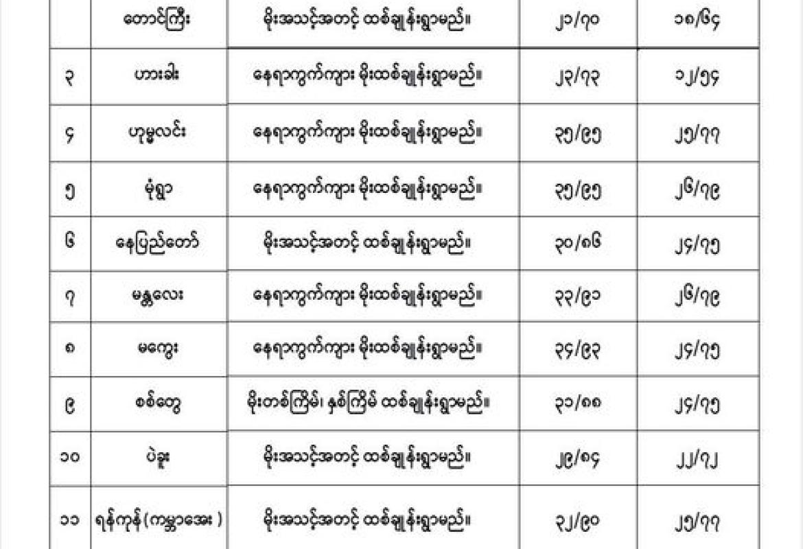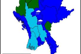 မန္တလေးတိုင်းဒေသကြီး၊ ရခိုင်ပြည်နယ်၊ စစ်ကိုင်းတိုင်းဒေသကြီးအထက်ပိုင်း၊ ဧရာဝတီတိုင်းဒေသကြီးနှင့် ကချင်ပြည်နယ်တို့တွင် နေရာကွက်၍ မိုးကြီးနိုင်