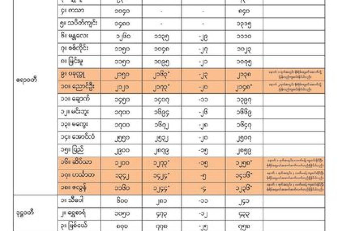 နေ့လယ်(၁၂:၃၀)နာရီအချိန်တွင် တိုင်းတာရရှိသော မြစ်ရေအခြေအနေများ