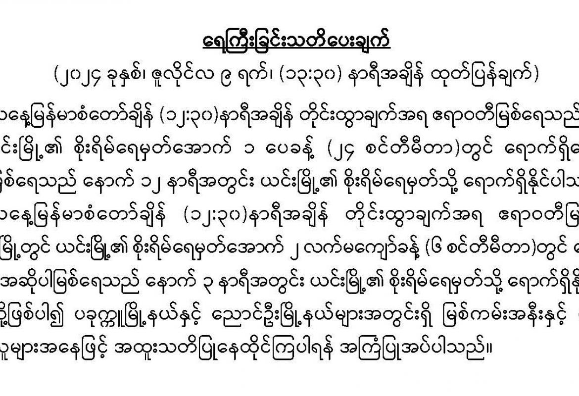 ၂၀၂၄ ခုနှစ်၊ ဇူလိုင် ၉ ရက် နံနက် ၇ နာရီ ထုတ်ပြန်ချက်