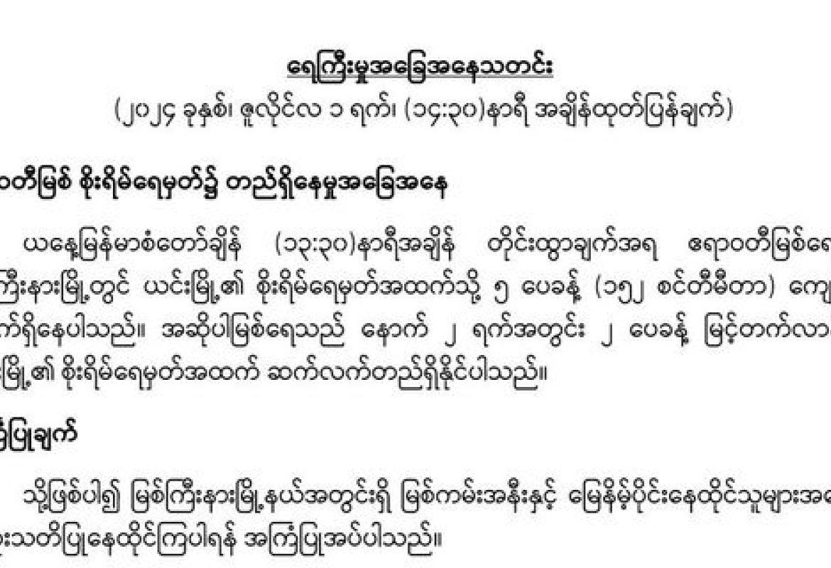 ၂၀၂၄ ခုနှစ်၊ ဇူလိုင်လ ပထမ(၁၀)ရက်ပတ်အတွက် မြစ်ရေအခြေအနေခန့်မှန်းချက်