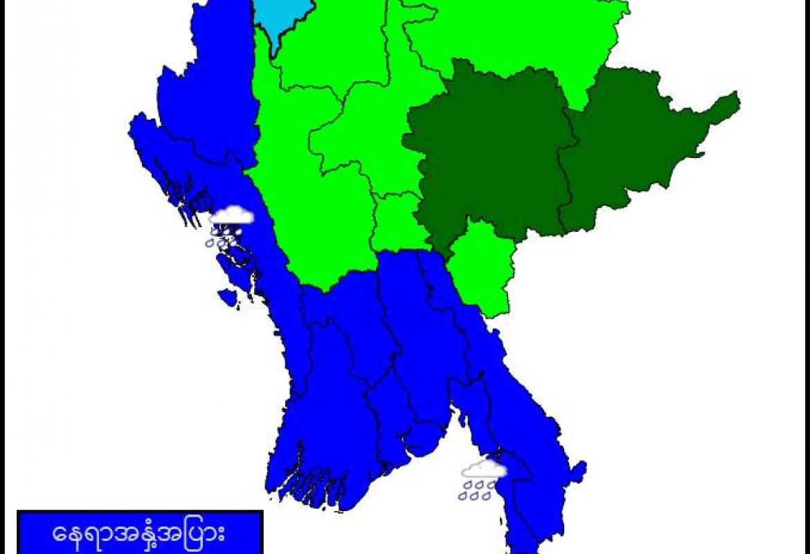 စစ်ကိုင်းတိုင်းဒေသကြီးအထက်ပိုင်း၊ ကချင်ပြည်နယ်၊ ကရင်ပြည်နယ်နှင့် မွန်ပြည်နယ်တို့တွင် မိုးပိုနေမည်