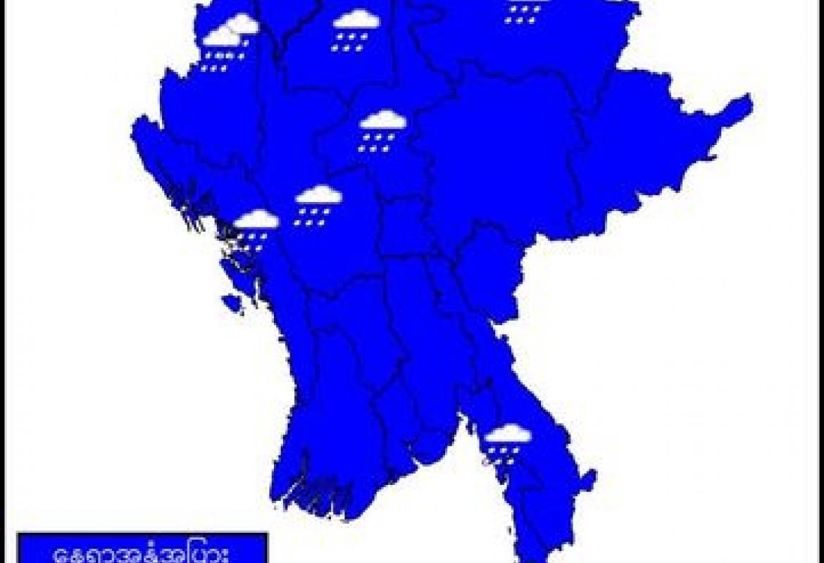 စစ်ကိုင်းတိုင်းဒေသကြီးအောက်ပိုင်း၊ မန္တလေးတိုင်းဒေသကြီး၊ မကွေးတိုင်းဒေသကြီး၊ ရှမ်းပြည်နယ်(မြောက်ပိုင်း)၊ ရခိုင်ပြည်နယ်နှင့် မွန်ပြည်နယ်တို့တွင် နေရာကွက်၍ မိုးကြီးနိုင်