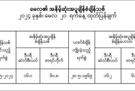 ၂၀၂၄ ခုနှစ်၊ မေလ ၂၀ ရက်နေ့တွင် မိုးလေဝသနှင့် ဇလဗေဒညွှန်ကြားမှုဦးစီးဌာနမှ ထုတ်ပြန်သည့် မေလ၏ အနိမ့်ဆုံးအပူချိန်စံချိန်သစ်