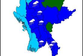 နေပြည်တော်၊ ရန်ကုန်တိုင်းဒေသကြီး၊ မန္တလေးတိုင်းဒေသကြီး၊ စစ်ကိုင်းတိုင်းဒေသကြီးအထက်ပိုင်း၊ ကရင်ပြည်နယ်နှင့် မွန်ပြည်နယ်တို့တွင် နေရာကွက်၍ မိုးကြီးနိုင်