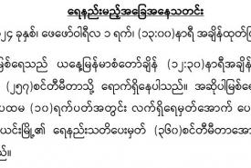 မနက်ဖြန်နံနက်အထိခန့်မှန်းချက်။ စစ်ကိုင်းတိုင်းဒေသကြီးအထက်ပိုင်း၊ ဧရာဝတီတိုင်းဒေသကြီးနှင့် ကချင်ပြည်နယ်တို့တွင် နေရာကွက်ကျား မိုးထစ်ချုန်းရွာနိုင်ပါသည်။ ရွာရန်ရာနှုန်း(၆၀) ဖြစ်ပါသည်။ နေပြည်တော်၊ မကွေးတိုင်းဒေသကြီးနှင့် ရှမ်းပြည်နယ်(တောင်ပိုင်းနှင့် အရှေ့ပိုင်း)တို့တွင် အများအားဖြင့် သာယာပြီး၊ ကျန်တိုင်းဒေသကြီးနှင့် ပြည်နယ်တို့တွင် တိမ်အသင့်အတင့် ဖြစ်ထွန်းမည်။