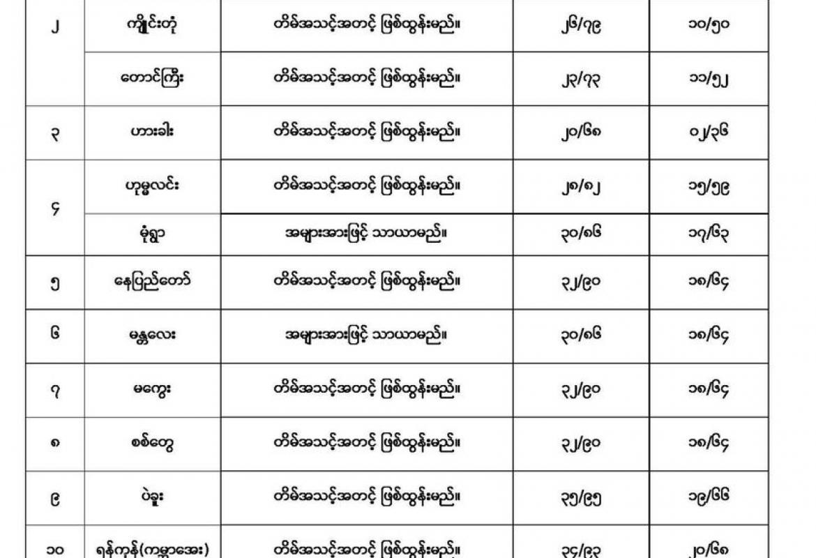 နေ့စဉ်မိုးလေဝသသတင်း ညနေ(၄:၀၀)နာရီအချိန် ထုတ်ပြန်ချက်