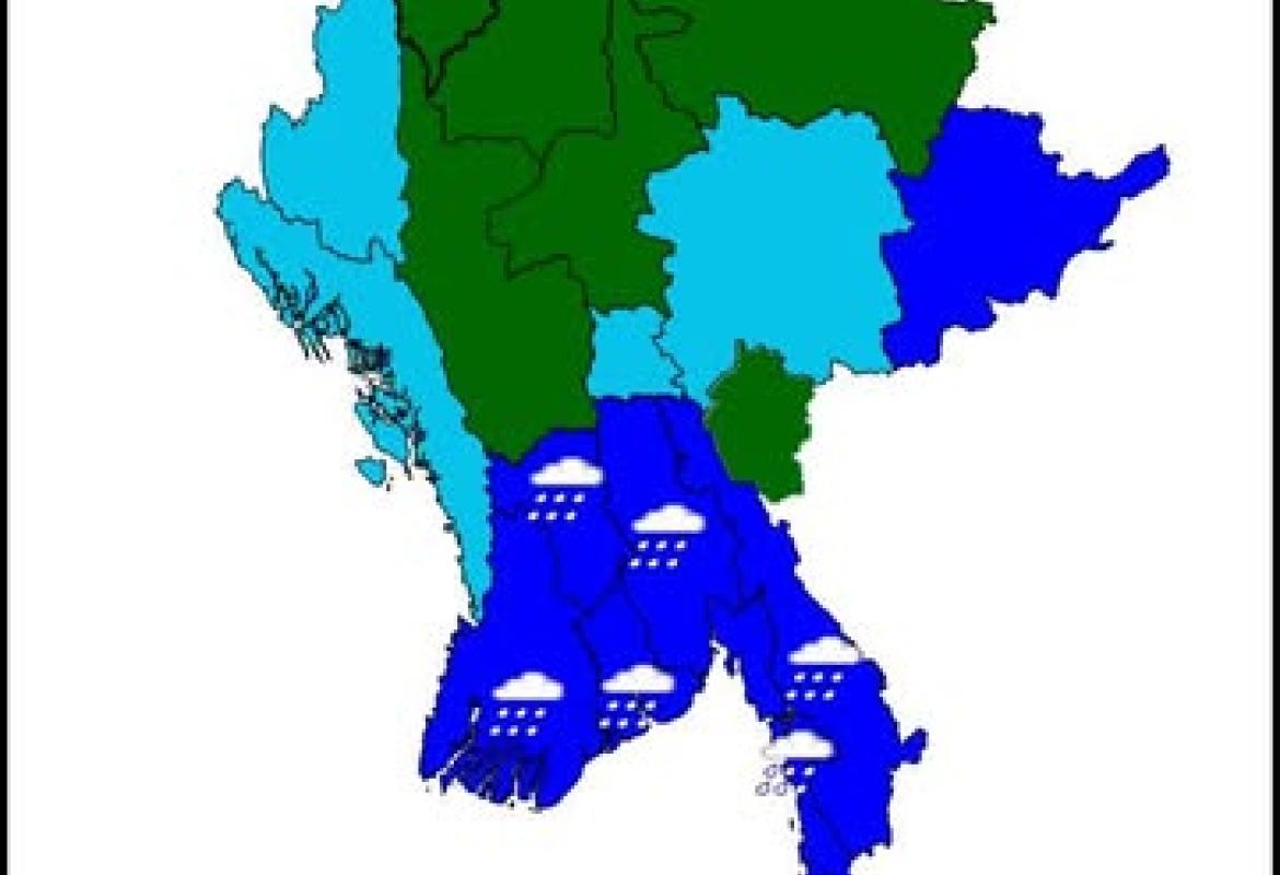 ရန်ကုန်တိုင်းဒေသကြီး၊ ဧရာဝတီတိုင်းဒေသကြီး၊ တနင်္သာရီတိုင်းဒေသကြီး၊ ကရင်ပြည်နယ်နှင့် မွန်ပြည်နယ်တို့တွင် မိုးဆက်လက်ပိုနေမည်