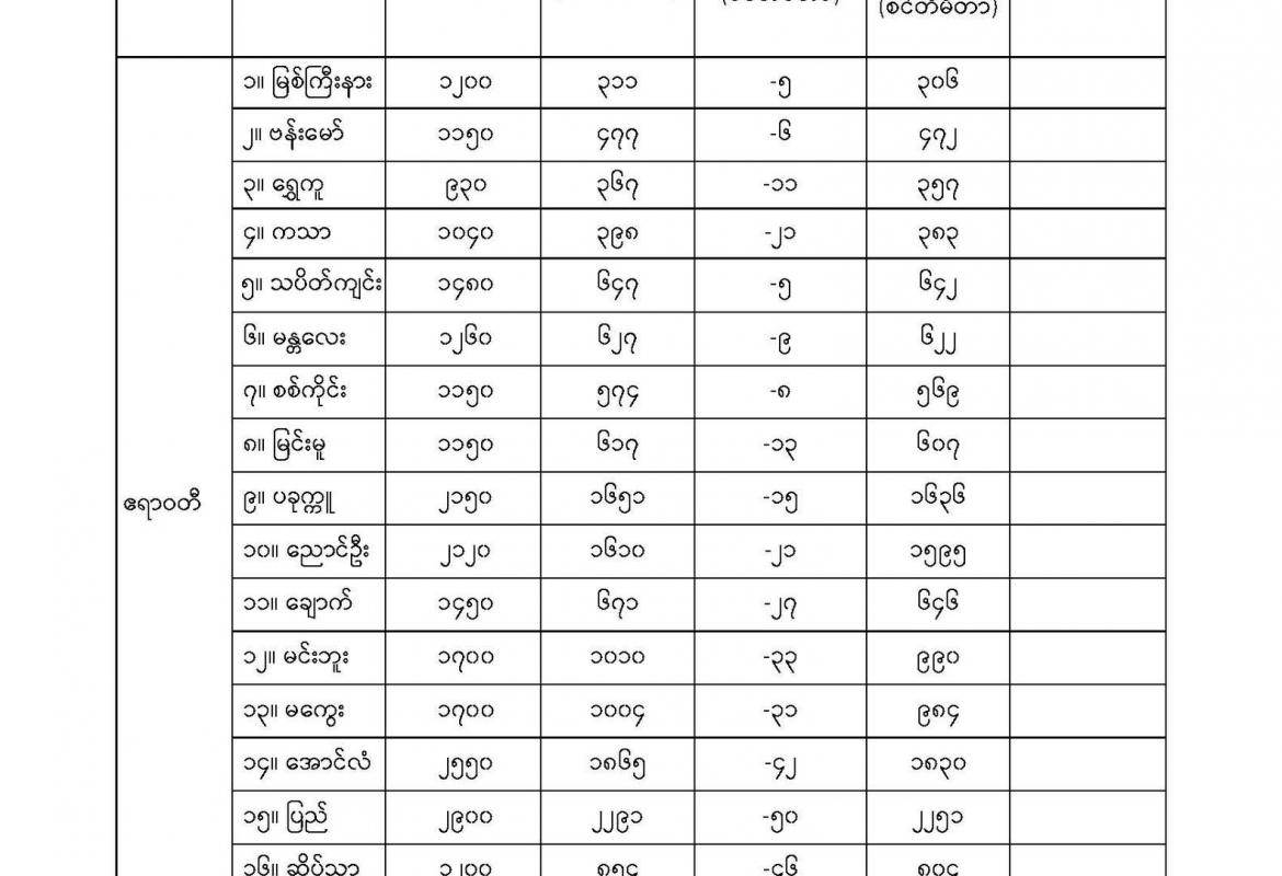 ယနေ့ညနေအထိခန့်မှန်းချက်မှာ စစ်ကိုင်းတိုင်းဒေသကြီး၊ မန္တလေးတိုင်းဒေသကြီး၊ မကွေးတိုင်း ဒေသကြီး၊ ဧရာဝတီတိုင်းဒေသကြီး၊ ကချင်ပြည်နယ်၊ ချင်းပြည်နယ်နှင့် ရခိုင်ပြည်နယ်တို့တွင် နေရာကွက်၍ မိုးကြီးနိုင်