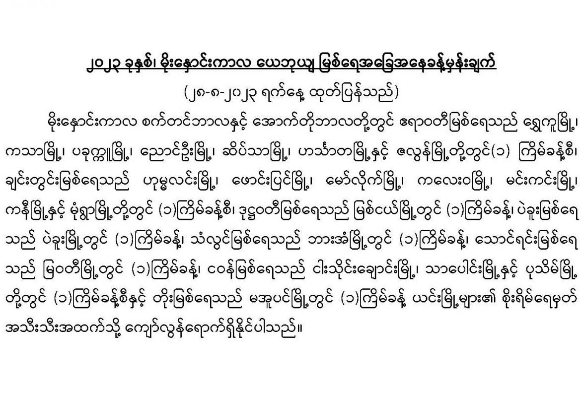 မိုးလေဝသနှင့်ဇလဗေဒညွန်ကြားမှုဦးစီးဌာနမှ (၂၅.၈.၂၀၂၃) ရက်နေ့တွင် ရေကြီးခြင်းသတိပေးချက်
