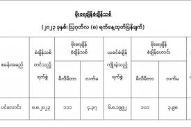 ၂၀၂၃ ခုနှစ်၊ ဩဂုတ်လ (၈)ရက်နေ့ မြန်မာစံတော်ချိန် (၀၉ :၃၀)နာရီအချိန် တိုင်းထွာချက်များအရ ဩဂုတ်လ၏ (၂၄)နာရီအတွင်း ရွာသွန်းခဲ့သော မိုးရေချိန်စံချိန်သစ်