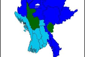 နေပြည်တော်၊ ရန်ကုန်တိုင်းဒေသကြီး၊ ပဲခူးတိုင်းဒေသကြီး၊ ဧရာဝတီတိုင်းဒေသကြီးနှင့် ရခိုင်ပြည်နယ်တို့တွင် နေရာစိပ်စိပ်နှင့် စစ်ကိုင်းတိုင်းဒေသကြီးနှင့် တနင်္သာရီတိုင်းဒေသကြီးတို့တွင် နေရာကွက်၍ မိုးကြီးနိုင်