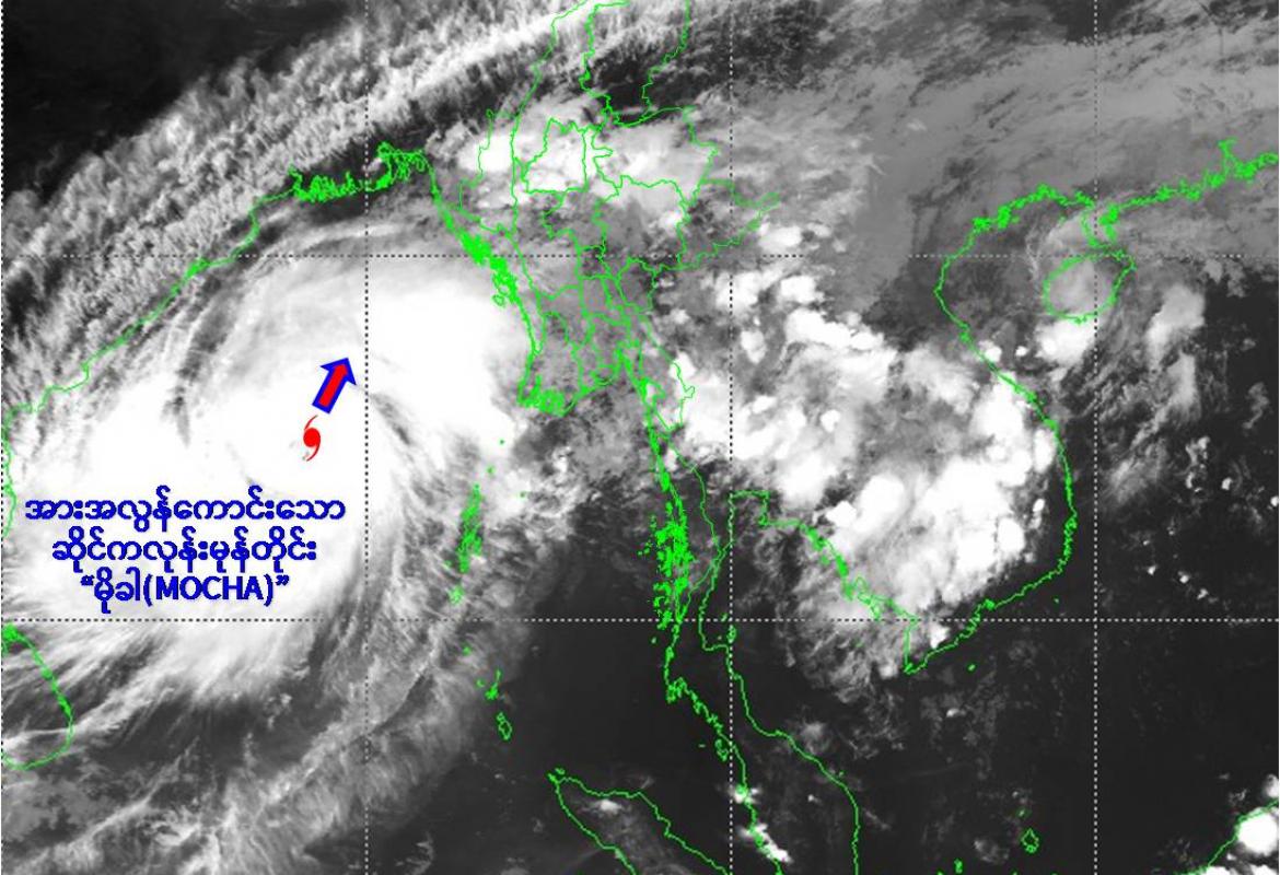 ယနေ့မြန်မာစံတော်ချိန် (၁၂:၃၀)နာရီအချိန် တိုင်းထွာချက်များအရ ဘင်္ဂလားပင်လယ်အော်အလယ်ပိုင်းနှင့် ယင်းနှင့်ဆက်စပ်လျက်ရှိသော ဘင်္ဂလားပင် လယ်အော်အရှေ့တောင်ပိုင်းတို့တွင် ဖြစ်ပေါ်နေသော အားအလွန်ကောင်းသော ဆိုင်ကလုန်းမုန်တိုင်း(Very Severe Cyclonic Storm) .............