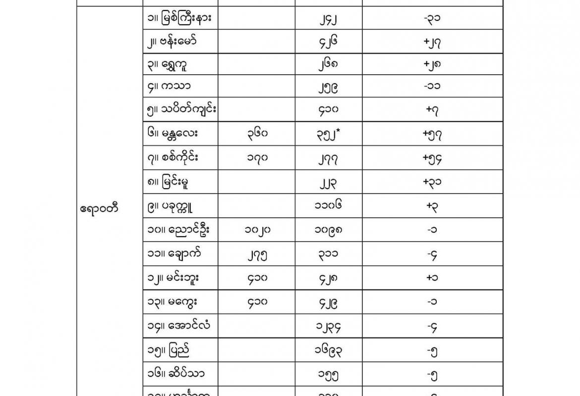 မိုးလေဝသနှင့်ဇလဗေဒညွှန်ကြားမှုဦးစီးဌာနက မေ ၈ ရက် နံနက်ပိုင်းထုတ်ပြန်သော မြစ်ရေအခြေအနေများ