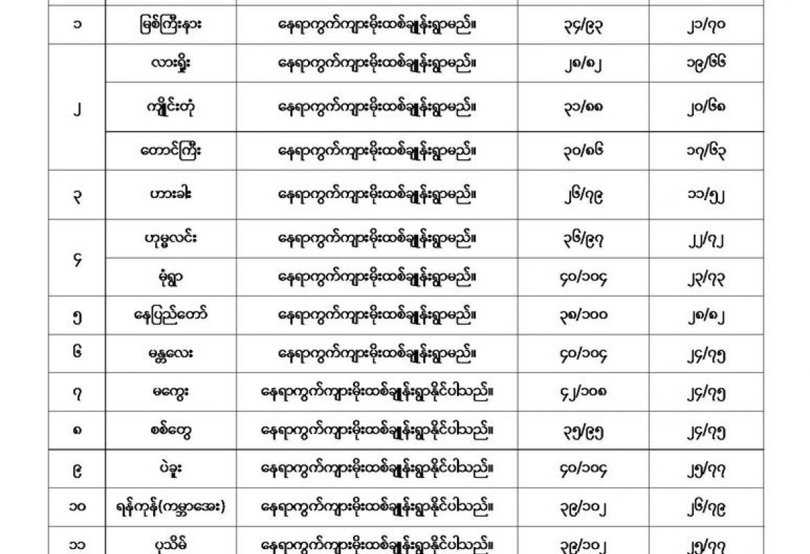 မိုးလေဝသနှင့်ဇလဗေဒညွှန်ကြားမှုဦးစီးဌာနမှ (၁.၅.၂၀၂၃) ရက်နေ့တွင် ရေနည်းမည့်အခြေအနေ