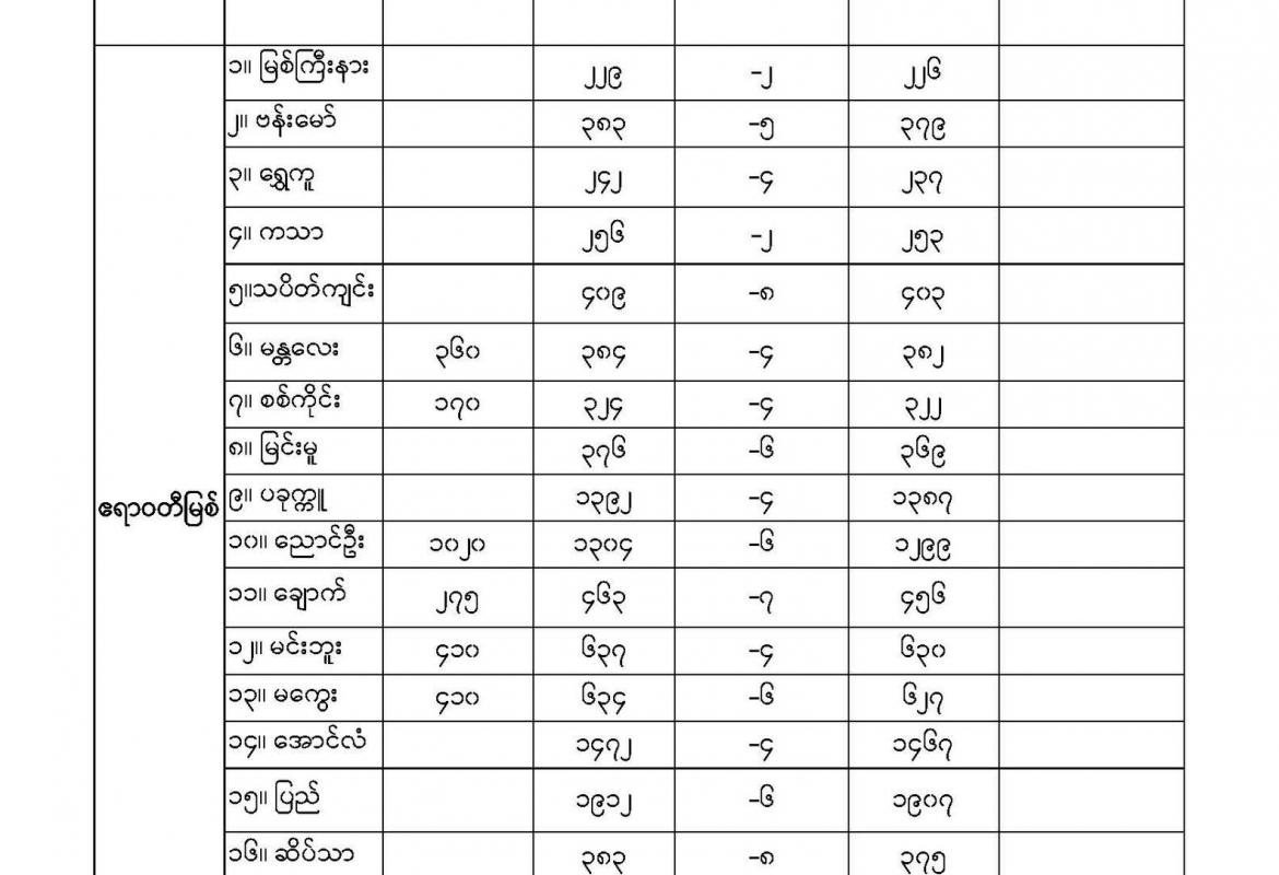 အောက်မှာဖော်ပြထားတာကတော့ မနက်ဖြန်အတွက် တိုင်းဒေသကြီးနှင့် ပြည်နယ်များရှိ မြို့ကြီးများ၏ အမ