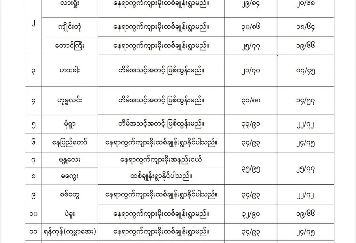 ရခိုင်ပြည်နယ်နှင့် ကယားပြည်နယ်တို့တွင် နေရာကွက်ကျား မိုးထစ်ချုန်းရွာမည်