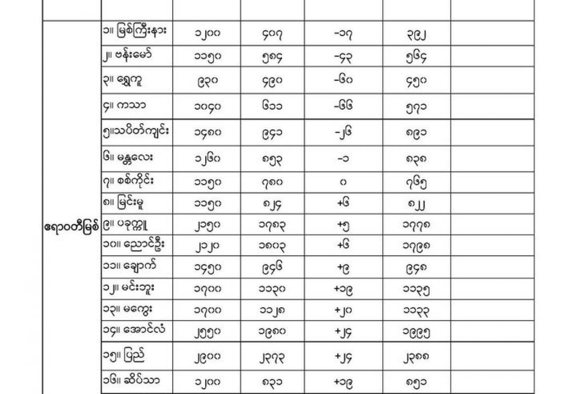 မိုးလေဝသနှင့် ဇလဗေဒညွှန်ကြားမှုဦးစီးဌာနမှ (၁၉.၁၀.၂၀၂၂) ရက်နေ့တွင် ထုတ်ပြန်သည့် နေ့စဉ်မြစ်ရေခန့်မှန်းချက်များကို အောက်ပါအတိုင်း ဖော်ပြထားပါတယ်။