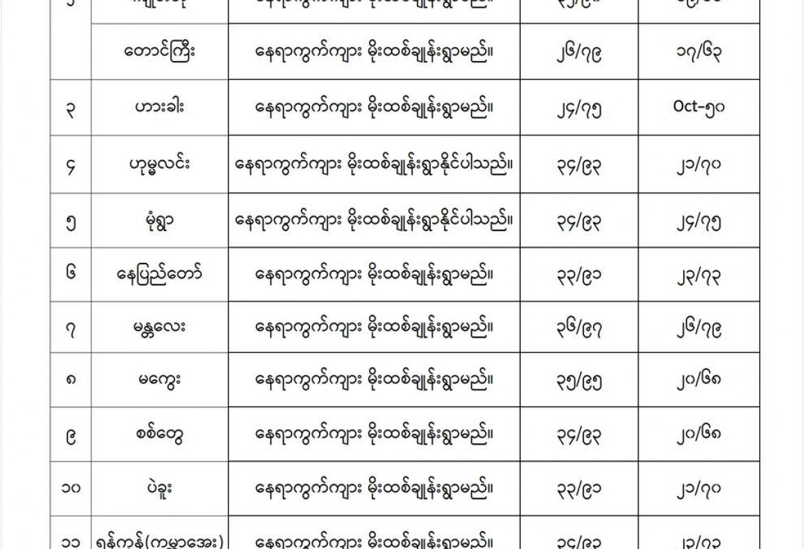 မနက်ဖြန်အတွက် တိုင်းဒေသကြီးနှင့် ပြည်နယ်များရှိ မြို့ကြီးများ၏ အမြင့်ဆုံးအပူချိန်၊ အနိမ့်ဆုံးအပူချိန်နှင့် မိုးလေဝသခန့်မှန်းချက်
