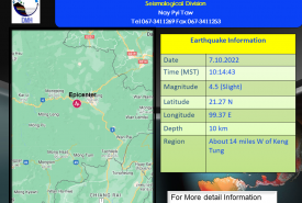 အင်အားရစ်(ခ်)တာစကေး (၄.၅) အဆင့်ရှိ အင်အားအနည်းငယ်ရှိသော မြေငလျင်တစ်ခု လှုပ်ရှား