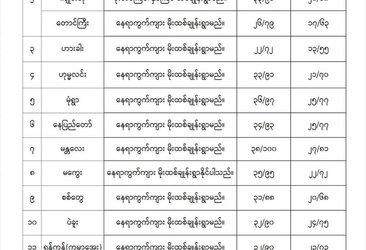 (၂၀၂၂ ခုနှစ်၊ ဩဂုတ်လ (၂၄)ရက်နေ့ နံနက်(၇:၀၀)နာရီအချိန် ထုတ်ပြန်ချက်)