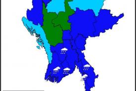 မနက်ဖြန်နံနက်အထိခန့်မှန်းချက်မှာ မန္တလေးတိုင်းဒေသကြီးနှင့် မကွေးတိုင်းဒေသကြီးတို့တွင် နေရာကျဲကျဲ၊ စစ်ကိုင်းတိုင်းဒေသကြီးအောက်ပိုင်း၊ ကချင်ပြည်နယ်၊ ရှမ်းပြည်နယ်(မြောက်ပိုင်း)နှင့် ရခိုင်ပြည်နယ်တို့တွင် နေရာစိပ်စိပ်နှင့် ကျန်တိုင်းဒေသကြီးနှင့် ပြည်နယ်တို့တွင် နေရာအနှံ့အပြား မိုးထစ်ချုန်းရွာပြီး ဧရာဝတီတိုင်းဒေသကြီး၊ တနင်္သာရီတိုင်းဒေသကြီးနှင့် မွန်ပြည်နယ်တို့တွင် ဒေသအလိုက်နှင့် စစ်ကိုင်းတိုင်းဒေသကြီးအထက်ပိုင်း၊ ပဲခူးတိုင်းဒေသကြီး၊ ရန်ကုန်တိုင်းဒေသကြီးနှင့် ကရင်ပြည်နယ်တို့တွင် နေရာကွက်၍ မိုးကြီးနိုင်ပါသည်။ ရွာရန်ရာနှုန်းပြည့် ဖြစ်ပါသည်။