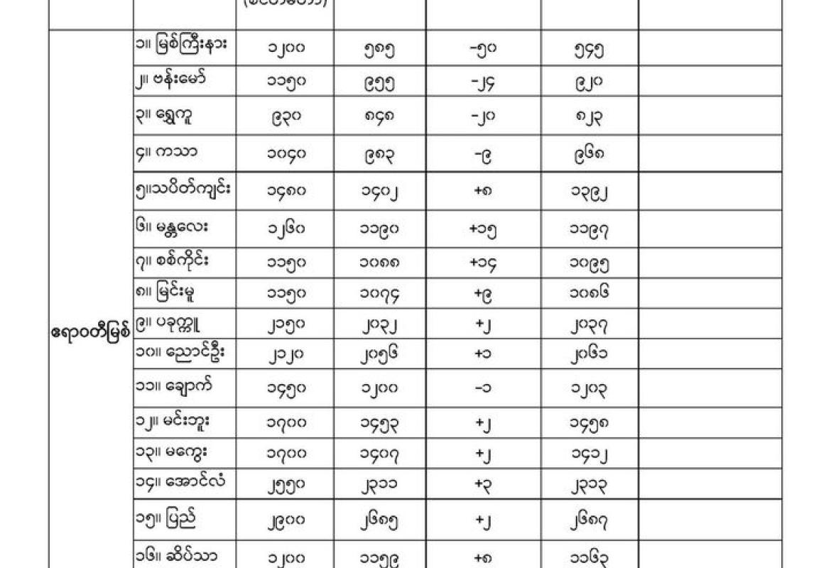 ယနေ့ညနေအထိခန့်မှန်းချက်မှာ နေပြည်တော်၊ စစ်ကိုင်းတိုင်းဒေသကြီးအောက်ပိုင်း၊ မန္တလေးတိုင်း ဒေသကြီး၊ မကွေးတိုင်းဒေသကြီးနှင့် ကယားပြည်နယ်တို့တွင် နေရာကျဲကျဲ၊ စစ်ကိုင်းတိုင်းဒေသကြီး အထက်ပိုင်း၊ ရှမ်းပြည်နယ်(အရှေ့ပိုင်း)နှင့် ချင်းပြည်နယ်တို့တွင် နေရာစိပ်စိပ်နှင့် ကျန်တိုင်းဒေသကြီးနှင့် ပြည်နယ်တို့တွင် နေရာအနှံ့အပြား မိုးထစ်ချုန်းရွာပြီး စစ်ကိုင်းတိုင်းဒေသကြီးအောက်ပိုင်း၊ မန္တလေးတိုင်းဒေသကြီး၊ တနင်္သာရီတိုင်းဒေသကြီးနှင့် မွန်ပြည်နယ်တို့တွင် နေရာကွက်၍ မိုးကြီးနိုင် သည်။ ရွာရန်ရာနှုန်းပြည့် ဖြစ်သည်။