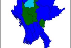 နေပြည်တော်၊ မန္တလေးတိုင်းဒေသကြီး၊ မကွေးတိုင်းဒေသကြီးနှင့် ကယားပြည်နယ်တို့တွင် နေရာကျဲကျဲ၊ စစ်ကိုင်းတိုင်းဒေသကြီးအောက်ပိုင်းတွင် နေရာစိပ်စိပ်နှင့် စစ်ကိုင်းတိုင်းဒေသကြီးအထက်ပိုင်းနှင့် ကချင်ပြည်နယ်တို့တွင် နေရာကွက်၍ မိုးကြီးနိုင်