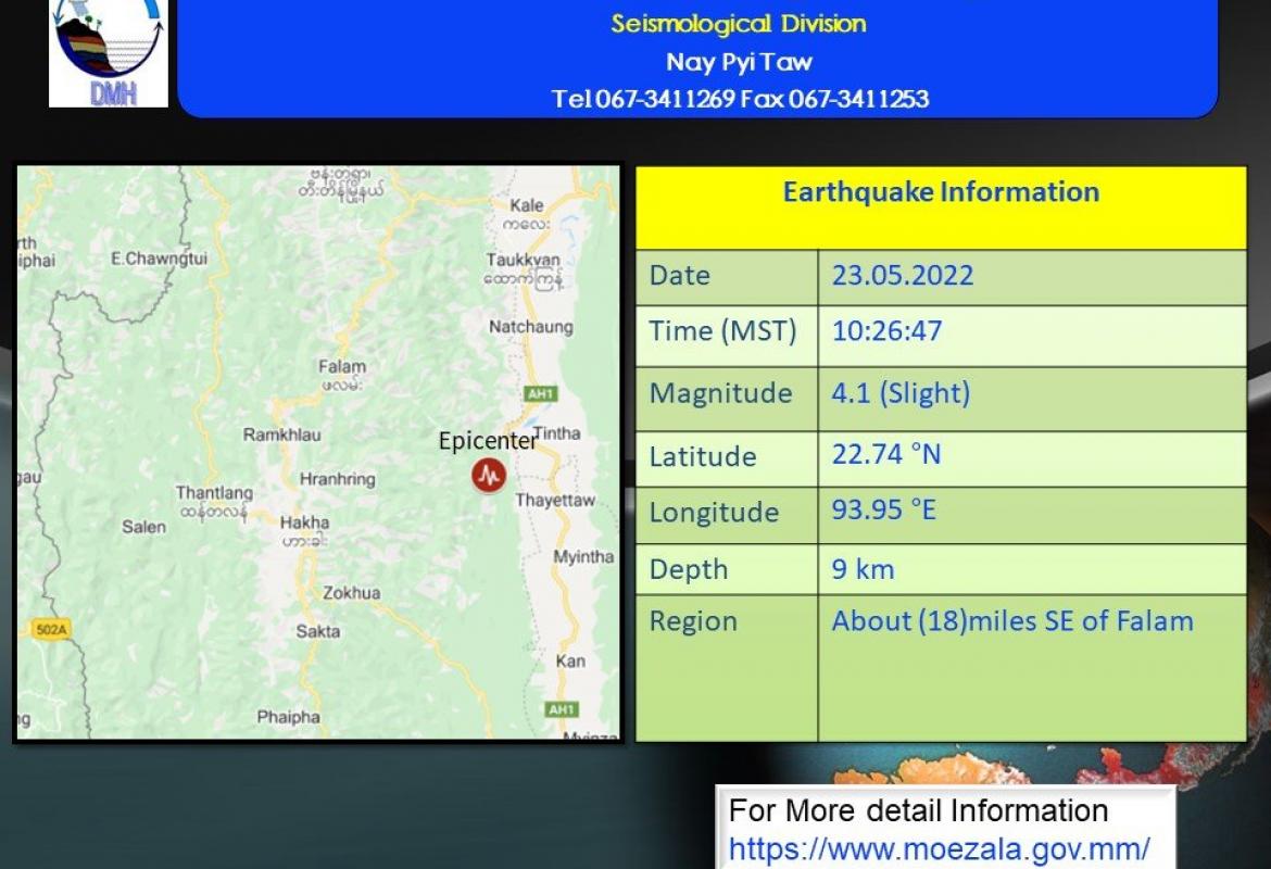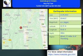 အင်အား ရစ်(ခ်)တာစကေး ၄ ဒသမ ၅ အဆင့်ရှိ မြေငလျင်လှုပ်ခတ်