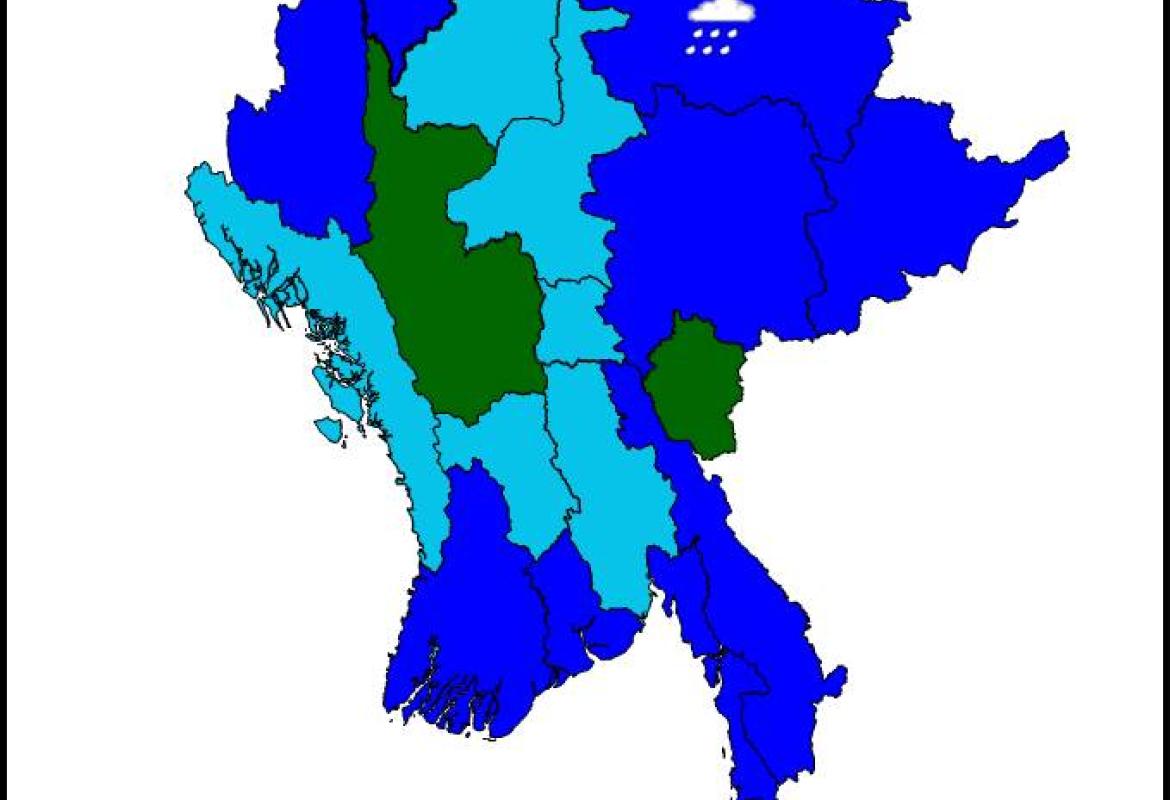 တနင်္သာရီတိုင်းဒေသကြီး၊ ကရင်ပြည်နယ်၊ မွန်ပြည်နယ်နှင့် ရှမ်းပြည်နယ်(တောင်ပိုင်းနှင့် အရှေ့ပိုင်း)တို့တွင် မိုးပိုလာနိုင်